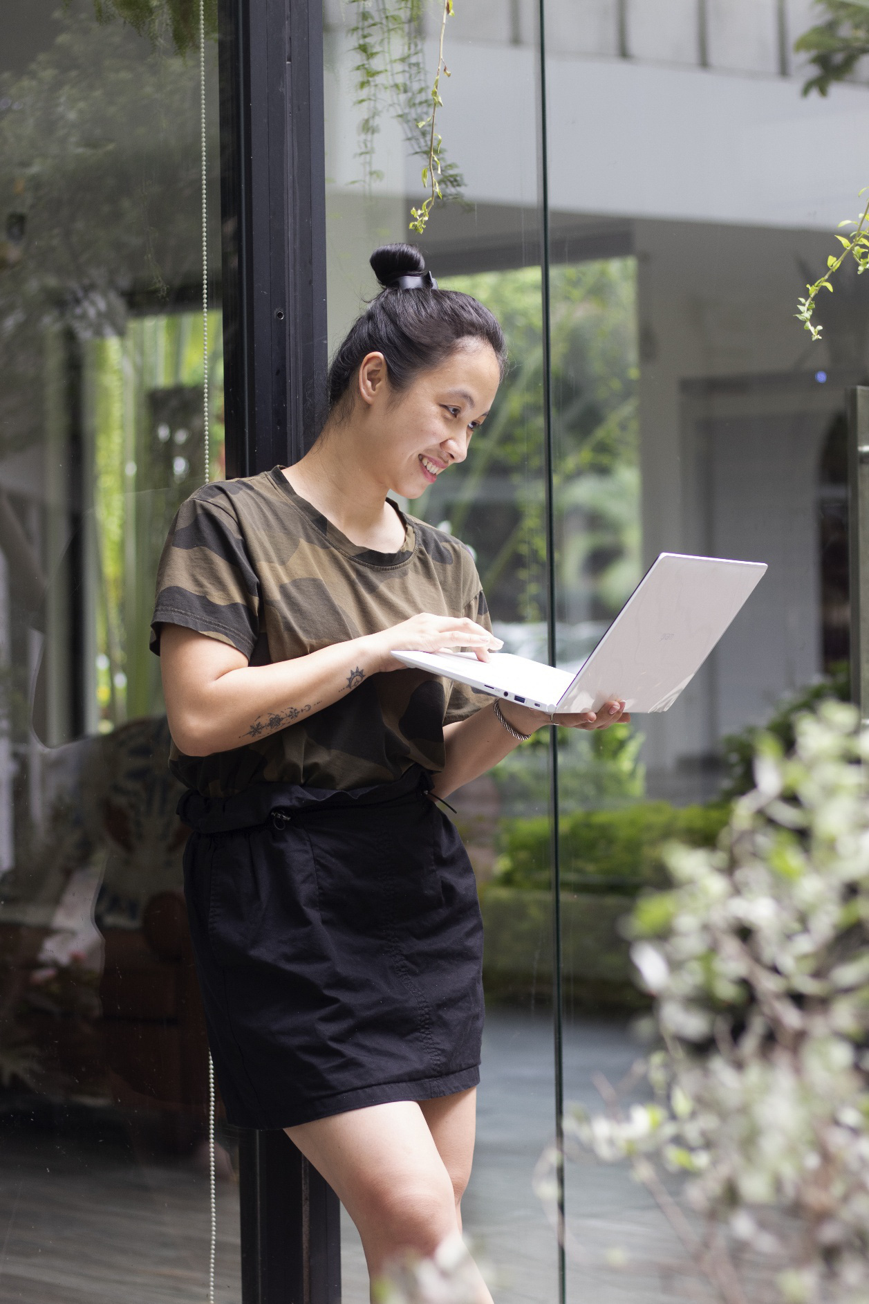 Yêu tự nhiên và các sản phẩm vững bền, đối với lĩnh vực công nghệ, Thu Hiền – một cô nàng đang khởi nghiệp với lĩnh vực thời trang hữu cơ – cũng tuyển lựa LG gram cho công việc và tiêu khiển hàng ngày. Cô cho biết: LG gram là chiếc máy dai sức, có tính đàn hồi cao với khả năng chịu nhiệt nóng, lạnh, chống sốc. Với chiếc máy tính này, mình có thể làm việc mọi lúc mọi nơi, suốt một ngày dài mà không phải lo lắng tìm ổ điện hay mang sạc".